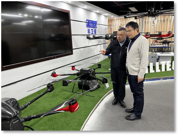 交流中,潘总介绍了公司的发展情况,提出了公司在发展过程中的痛点,并对科卫泰无人机系统技术优势及无人机产品进行了细致的介绍。聂会长详细介绍了协会的发展历程,提出了协会、企业与研究院携手发展的建议,并诚邀研究院加入到深圳市航空航天人才协会的建设工作中。三方围绕无人机应用场景、无线通信等有关方面进行了深入探讨和交流。王保江副院长表示,希望大家加强进一步沟通,将合作需求落到实处,共同为深圳市低空经济产业创新发展贡献力量。
