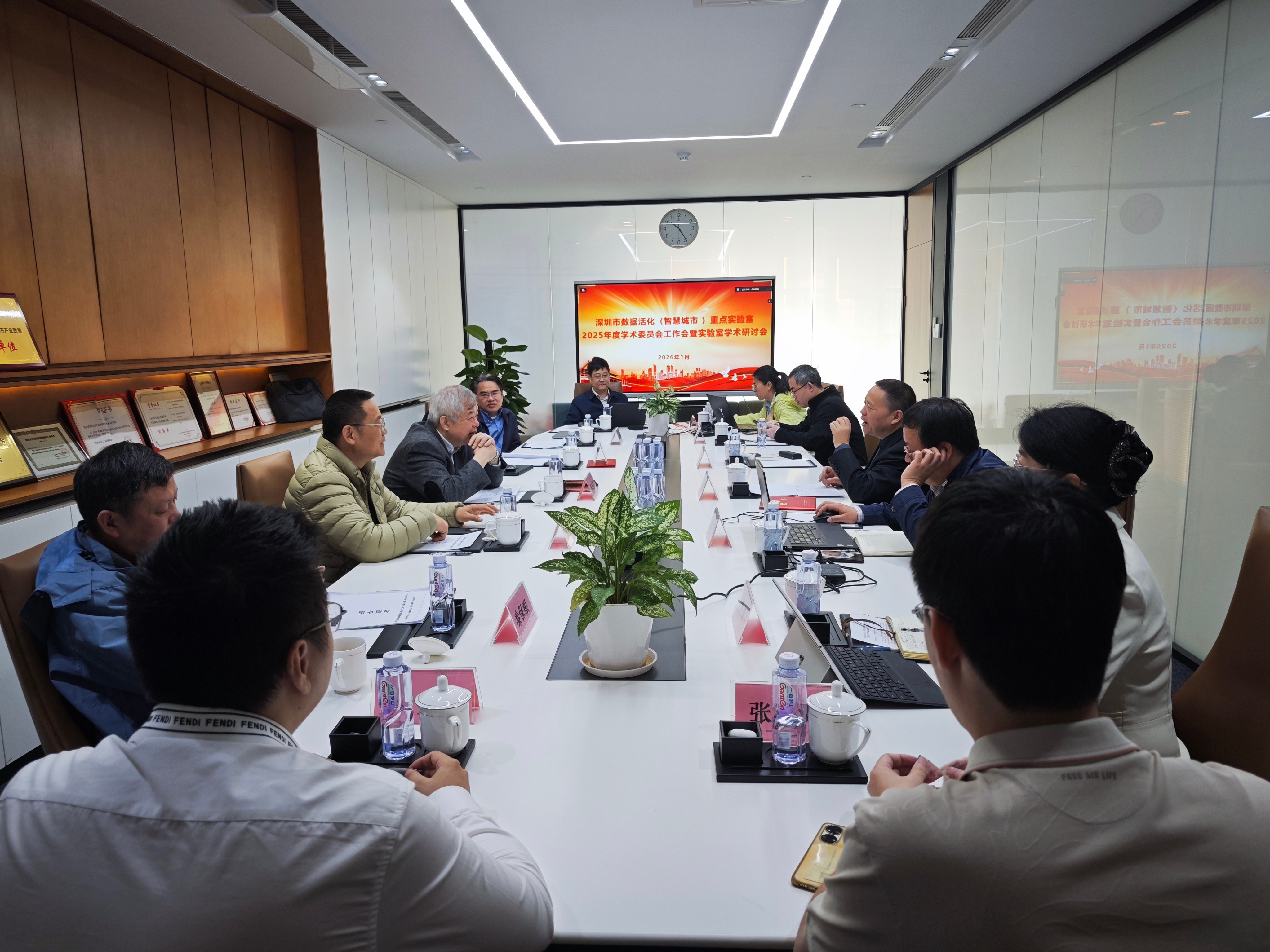 2026年1月18日至21日,深圳市数据活化(智慧城市)重点实验室(以下简称:实验室)2025年度学术委员会工作会暨实验室学术研讨会在深圳北航新兴产业技术研究院(以下简称:研究院)顺利举办。实验室学术委员会主任、欧洲科学院院士、香港理工大学陈长汶教授主持会议,审议了实验室主任刘荣科教授关于《深圳市数据活化(智慧城市)重点实验室2025年度工作汇报及2026年工作计划》的汇报,参观了实验室科技成果展厅。学术委员会对实验室 2025 年度在平台建设、科学研究及产学研合作等方面的工作给予充分肯定,认为 2026 年工作计划既具前瞻性又切实可行,期待实验室持续深耕,贡献更多突破性技术成果与创新解决方案。