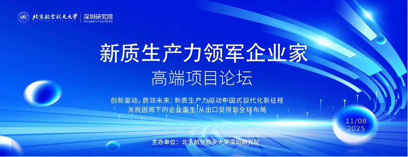 11月8日下午,由深圳北航新兴产业技术研究院(简称:北航深圳研究院)主办的“新质生产力领军企业家”高端项目论坛,在南山科技园北航大厦成功举办。